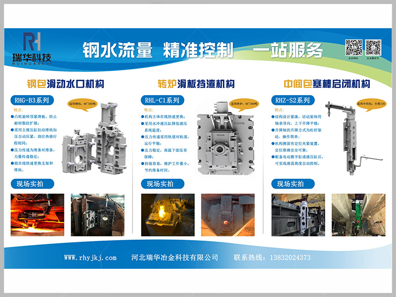 河北瑞華是一家集研發(fā)、制造、銷售鋼水流量控制機構(gòu)和提供熱修現(xiàn)場施工的企業(yè)。企業(yè)秉承自主研發(fā)、科學創(chuàng)新、精益求精的理念,生產(chǎn)高質(zhì)低耗的轉(zhuǎn)爐滑板擋渣機構(gòu)、中間包塞棒機構(gòu)、中間包快換機構(gòu)、鋼包滑動水口機構(gòu)以及配套液壓耐材產(chǎn)品,并承接冷熱修工段工程承包、轉(zhuǎn)爐擋渣系統(tǒng)承包服務。服務于廣大鋼鐵企業(yè)。企業(yè)通過了質(zhì)量管理、職業(yè)健康管理、環(huán)境管理三體系認證,取得了建筑施工資質(zhì)以及安全生產(chǎn)許可。目前企業(yè)客戶覆蓋國內(nèi)外100多家鋼廠,產(chǎn)品遠銷俄羅斯、伊朗、緬甸等國,其中涉及到50噸到300噸不等的轉(zhuǎn)爐和電爐客戶,為多家鋼鐵企業(yè)提供總包施工服務。